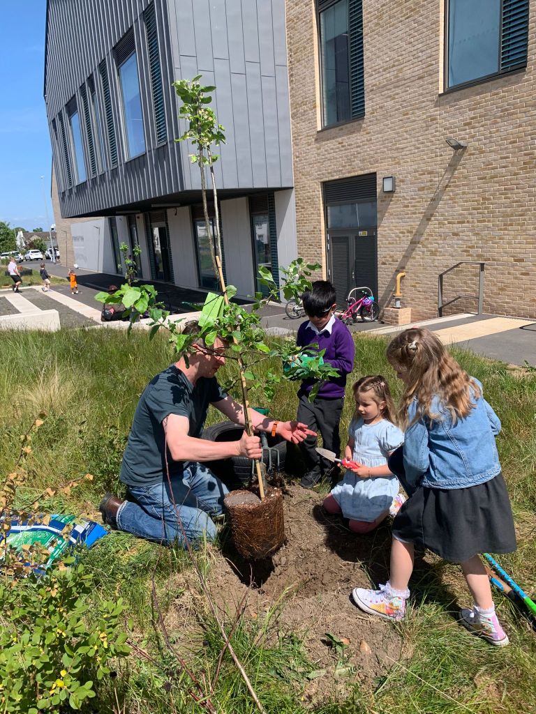 At Frogston Primary School, we have been working hard with our pupils and families to create a vibrant community garden. Currently, our community garden occupies part of the strip of land immediately in front of our school. There we have planted raspberries, strawberries, redcurrants, apples, cherries and herbs for our whole community to access and enjoy whenever they want. We also plant annual crops including peas and beans.